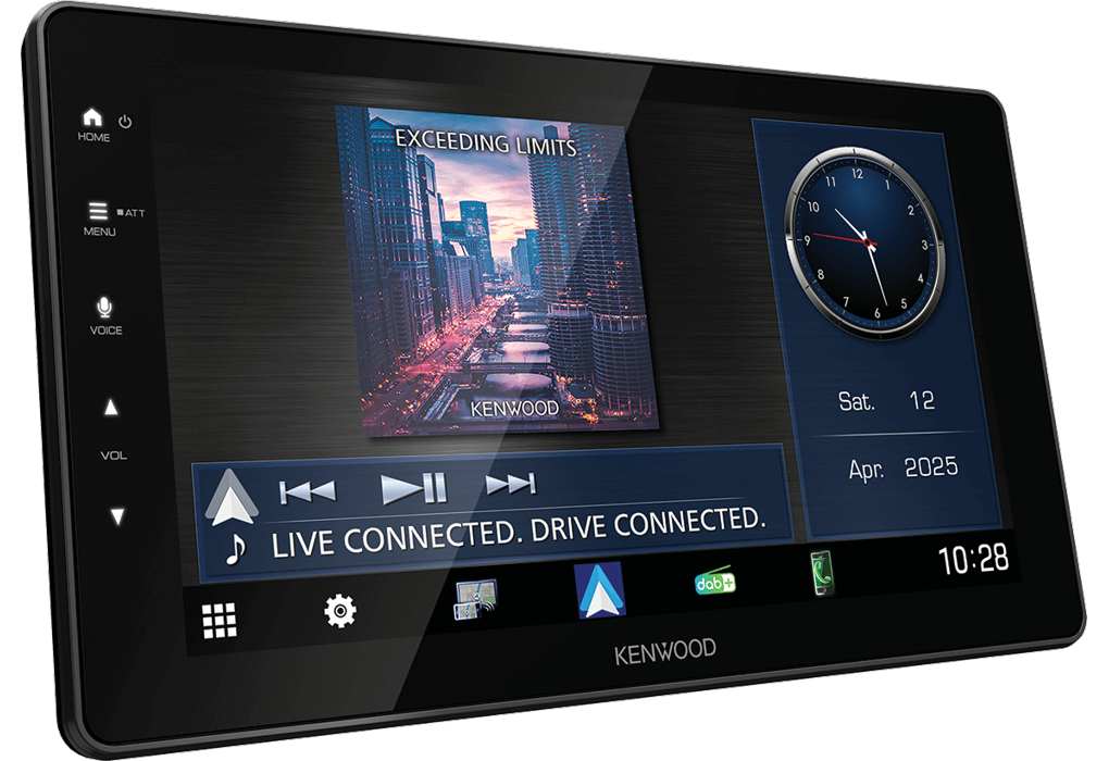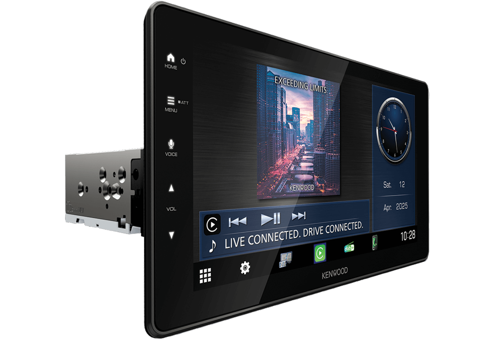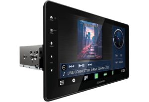 1DIN Digital Multimedia Receiver with Floating, 9.0″ High Definition Display Panel & Enhanced Wireless Smartphone Connections.